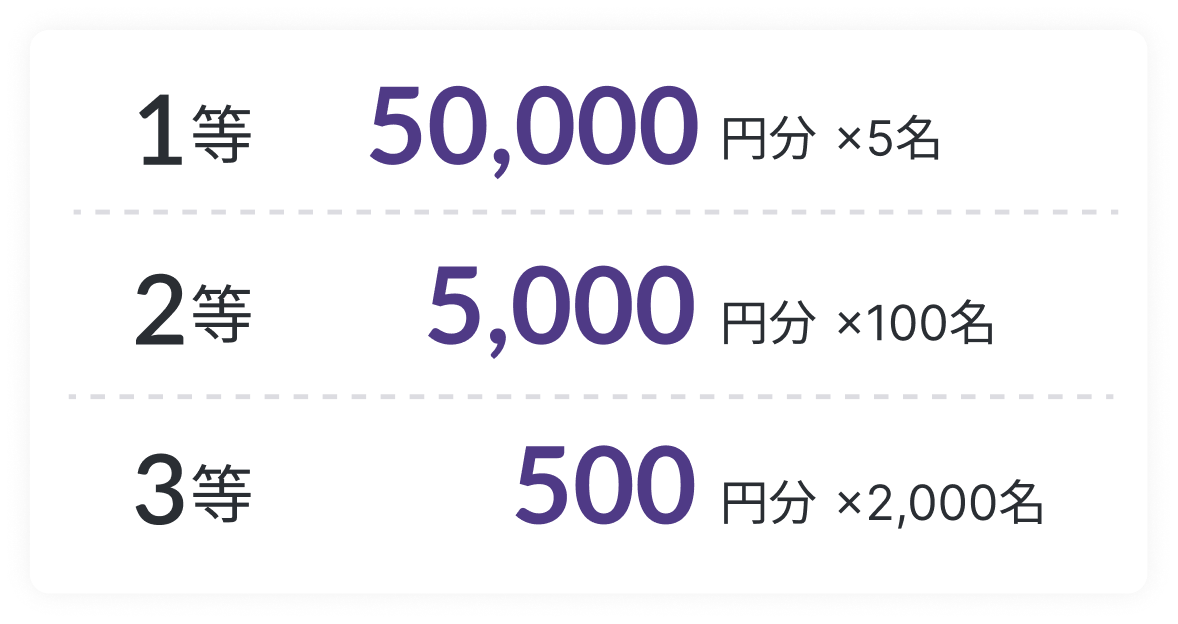 ・ 2等〜3等は1回500円以上のお支払いが対象